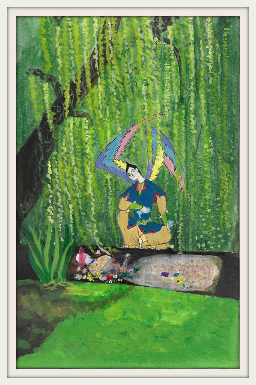 Bir sembolde ben eklemek istedim. Bir renk de ben.. Maviyi seçtim.. Mavi bir mendil iliştirdim perinin eline. Kederi, vefasızlığı, onsuz mutluluğun olmayışını ifade etsin diye.